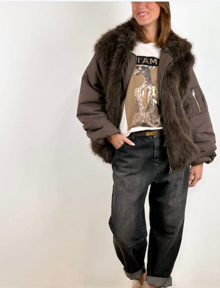 Giacca modello bomber con dettagli in pelliccia
